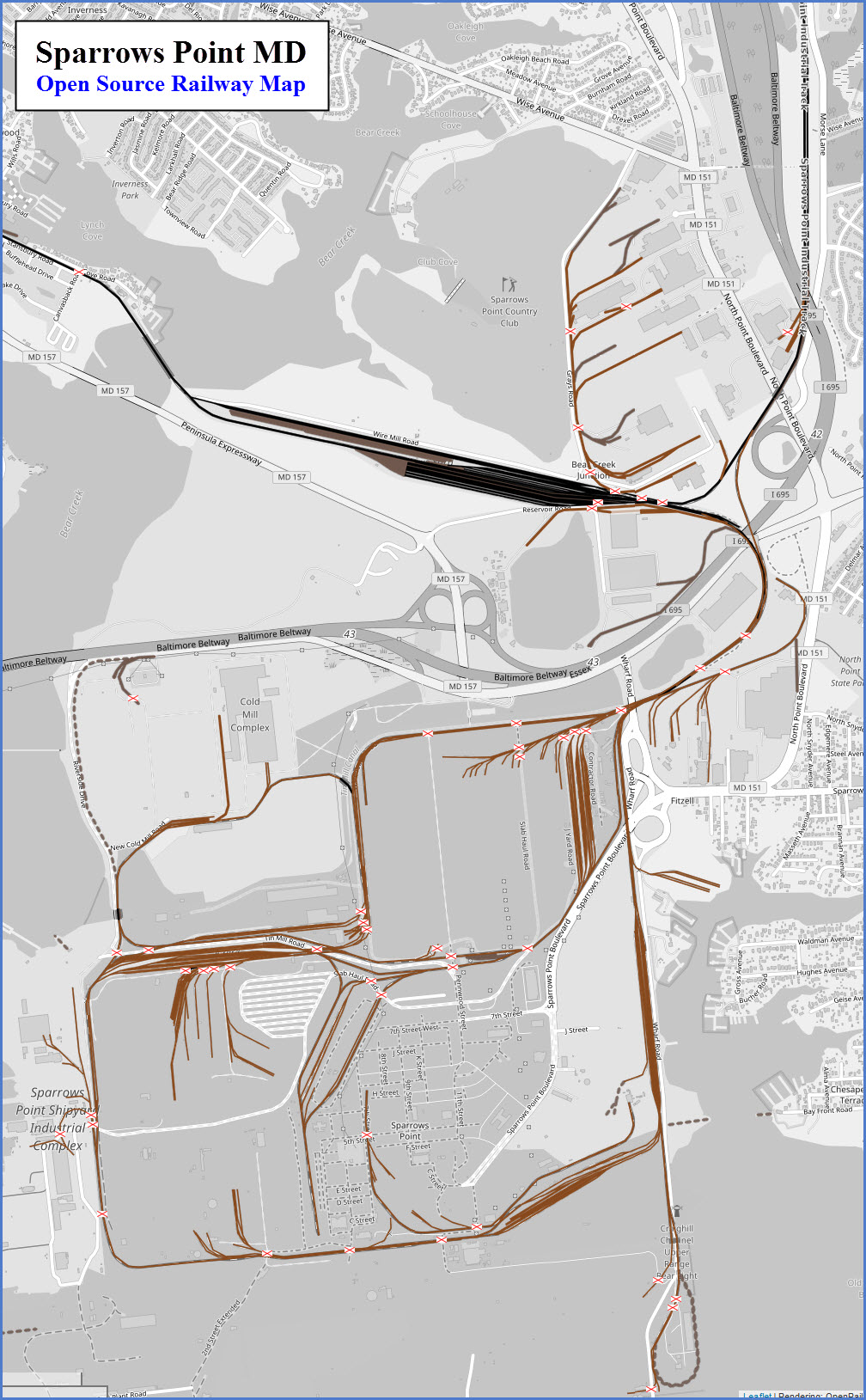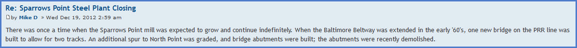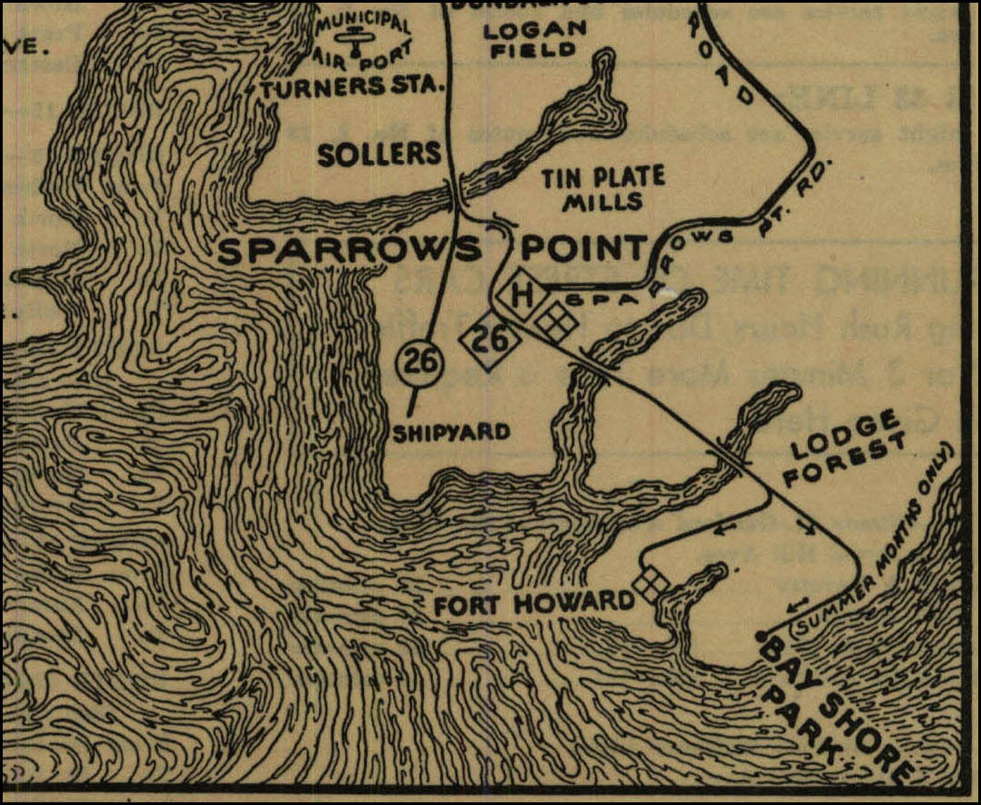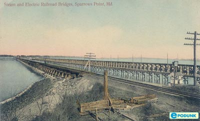Streetcars used to come out to Sparrows Point until the demise of the streetcar system in 1963. Nothing remains of the line into Sparrows point, Bay Shore, or Ft Howard.