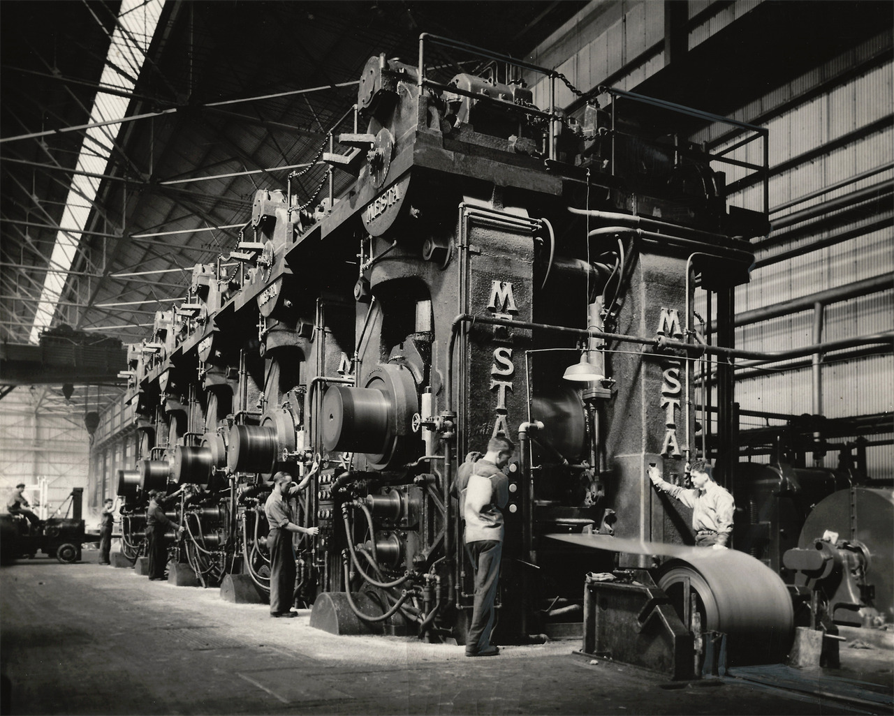 Rollers at the Tin Mill. When I visited the plant in 1972 to do some service, these things were twice as high, and the sheet was travelling fast. When the roll gets full, there is a system of