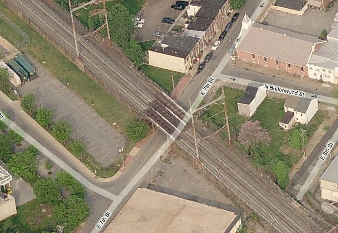 The first Pennsylvania Railroad depot in town was at grade