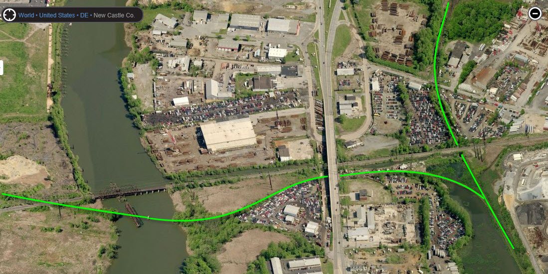 The track now owned by the Norfolk Southern was the Pennsy's freight line swinging around the south side of Wilmington and used to be double track, including the swing bridge. See the GIF below. There were also numerous Reading RR crossings on this short stretch of track, and was way more signaled than it was now, complete with smashboards at the two river crossings.