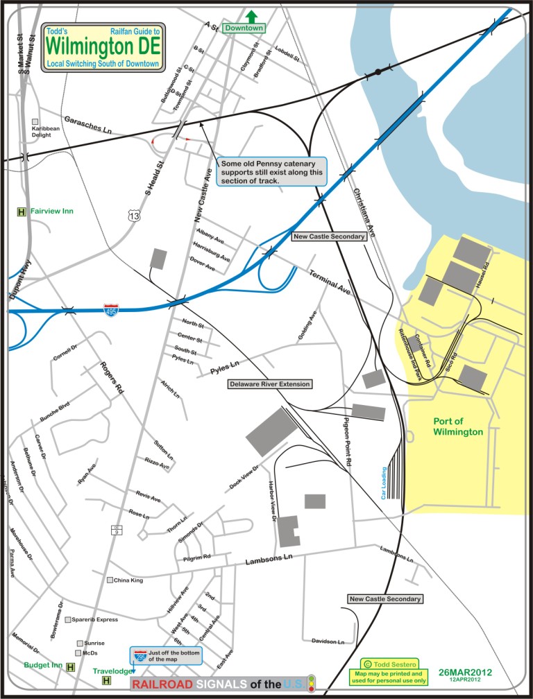 Just south of the wye on the south side of town is a bunch of local switching opportunities if you have the time to wait. Judging from the aerial shots, most of the buildings highlighted on my map are still being serviced by rail, which in this case is Norfolk Southern. In the Mid-Atlantic area, there is becoming less and less local stuff being done by them. Take pictures while you can.....
