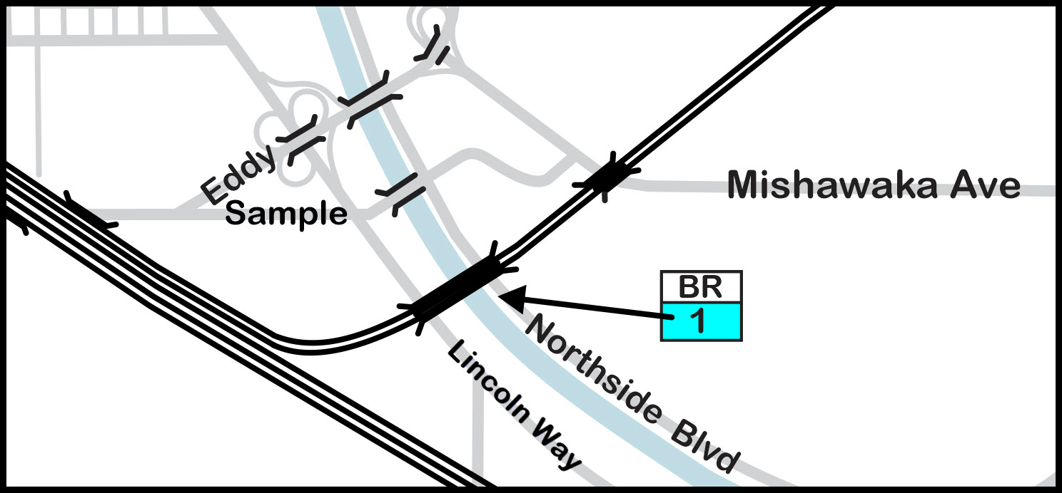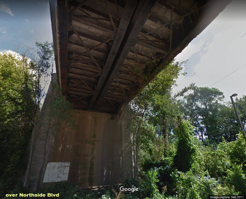 Bridge over Lincoln Way, Northside Blvd, and the River