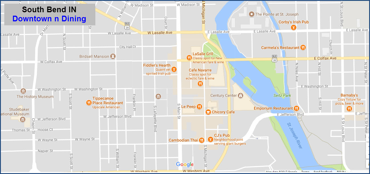 GPS Coordinates: 41.676377, -86.250360 (downtown at Michigan/Washington