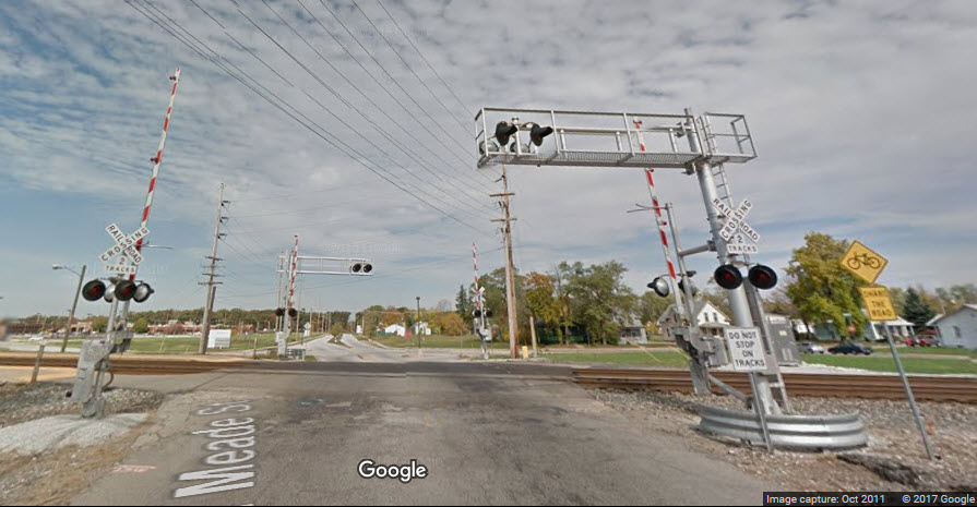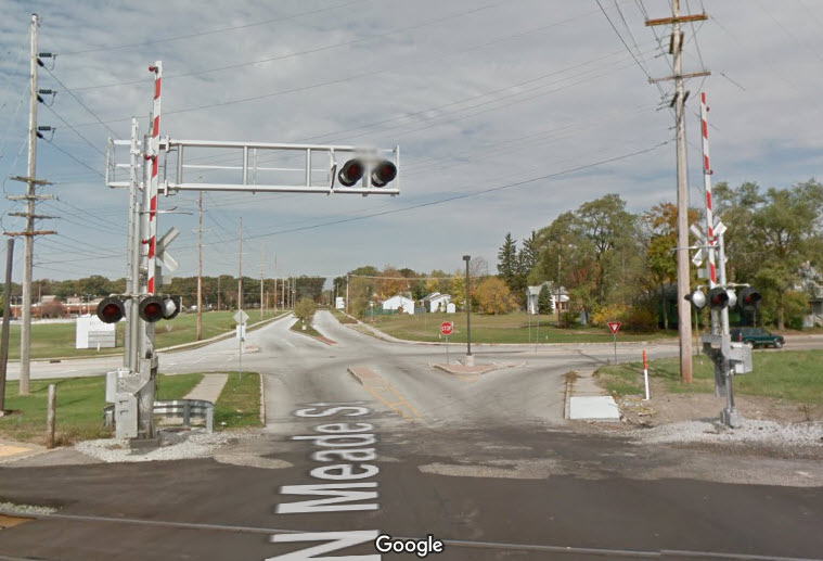 US 20 comes in from the west, and then circles around the south side of town, picking up where US 31 ends where they come together. US 20 also crosses the two "westward" rail lines as seen below.