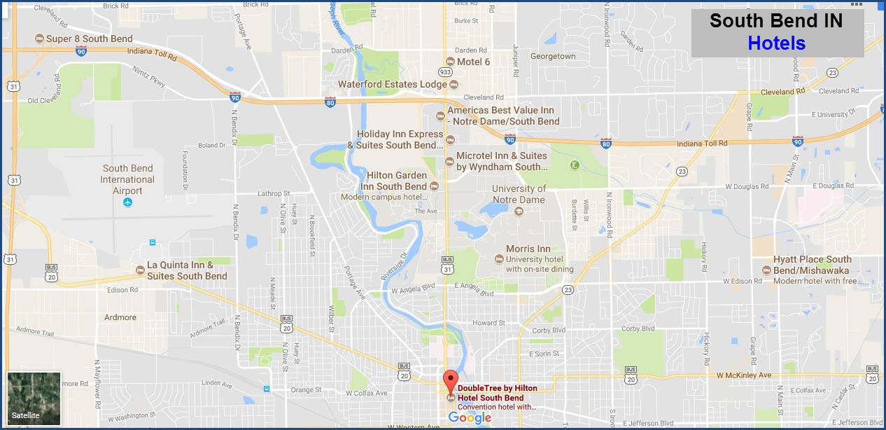 South Bend is pretty easy to get to, at least for those of us traveling east and west along the northern parts of OH, IN, PA, and IL. Interstate 1-80/90 brushes by the northern side of South Bend, although it is a toll road called the Indiana Toll Road.