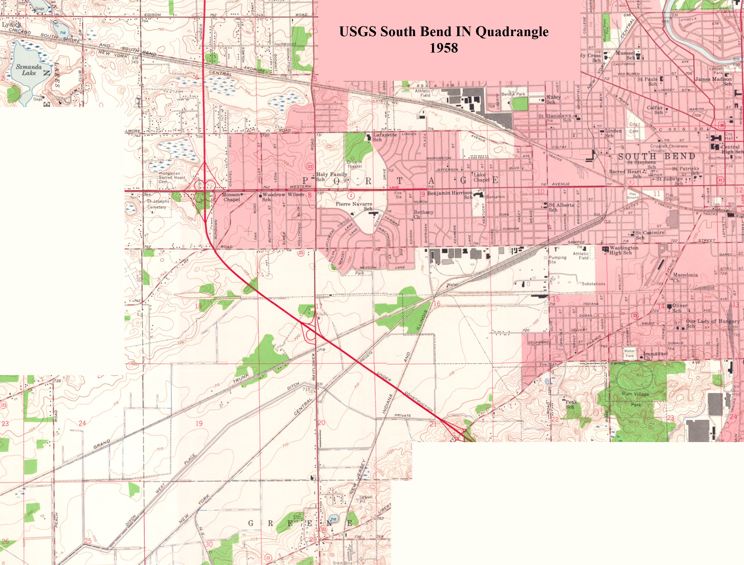 This is a section of the USGS maps of South bend from 1958, east and west.