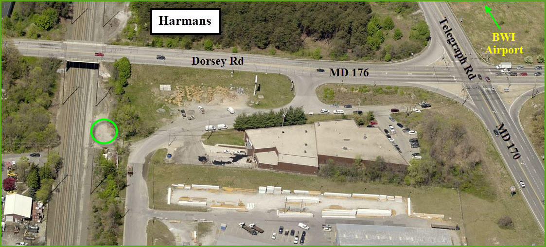 Up on the top of the map at Harman's, there is a good spot for taking pictures, from right along the right-of-way, next to an 84 Lumber lumberyard