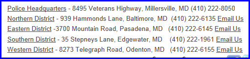 The Anne Arundel county website for police is here.