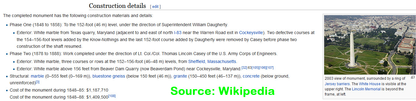 of it's biggest and earliest customers. Marble for the Washington Monument in Washington DC came from here, and at one point, when they needed replacement
