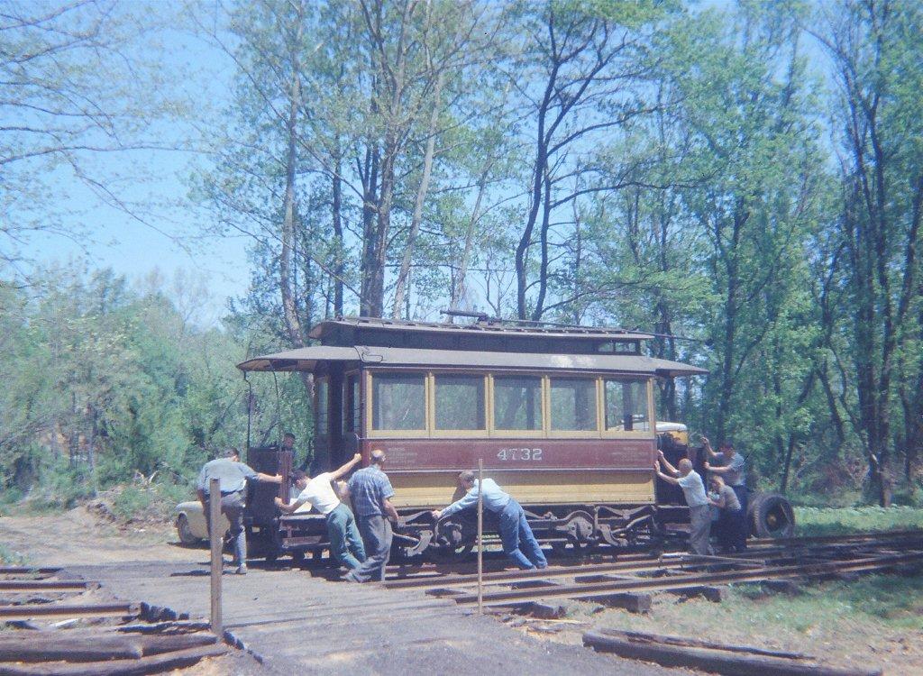 A picture of 4732 at Lake Roland, either being loaded up or taken off of a flatbed. Picture by John Engleman.