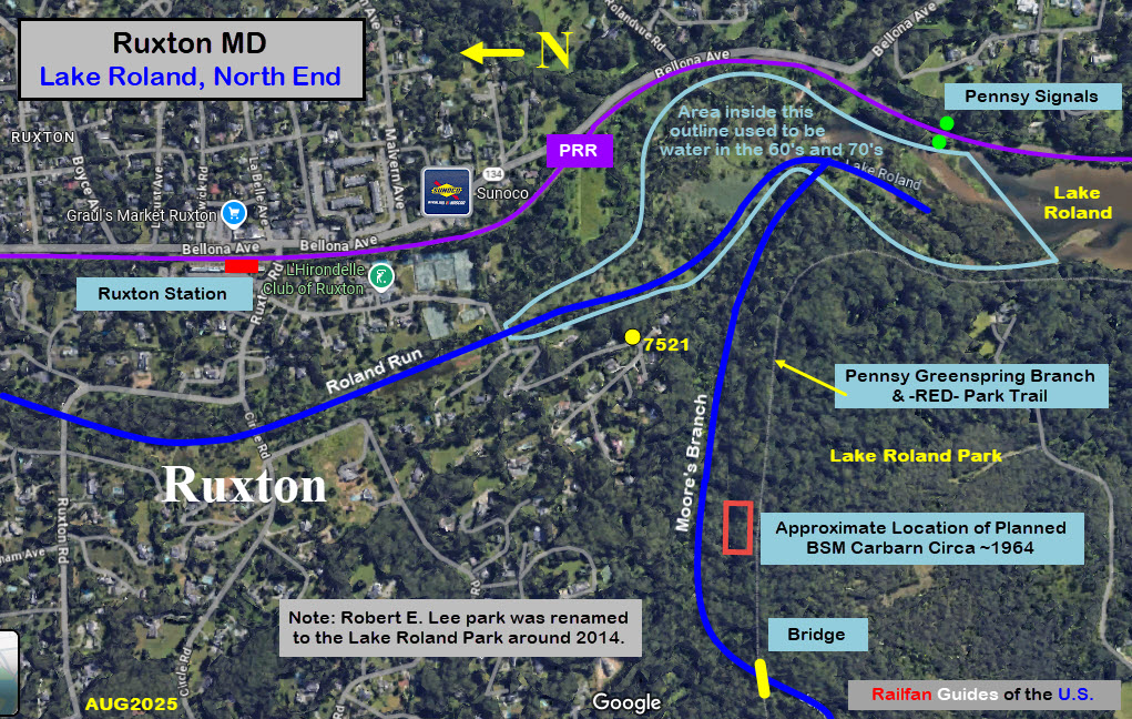 Club Road, near the top of the hill (7521 on the map), you could see the Pennsy Trains on the Northern Central when the trees were bare. It was