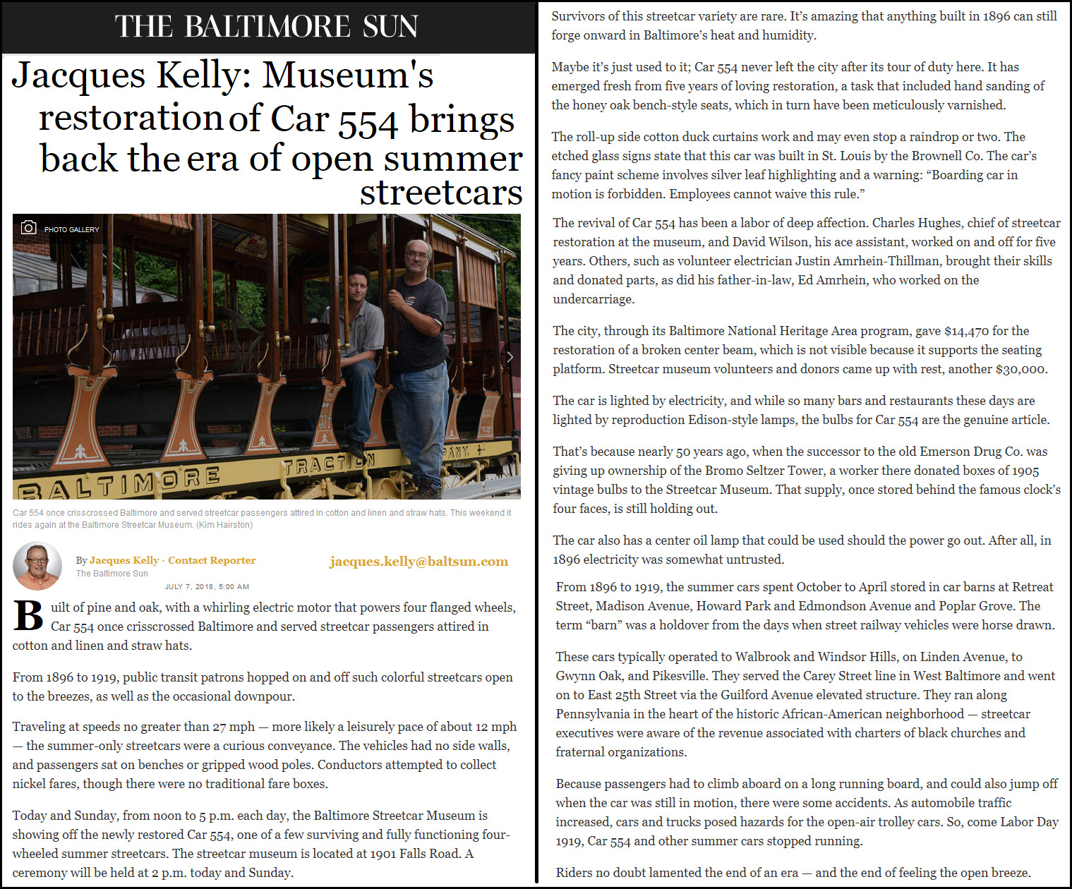 Baltimore Streetcar Museum where it is still used occasionally for parades.