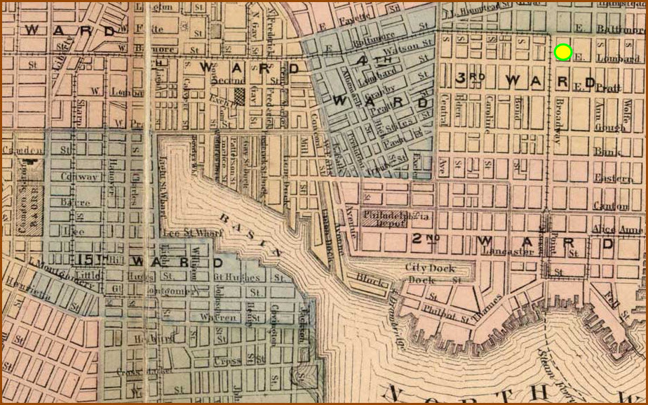 I used to own an 1845 rowhouse in Fells Point (at the dot), 7 S. Broadway, and it used to sit on