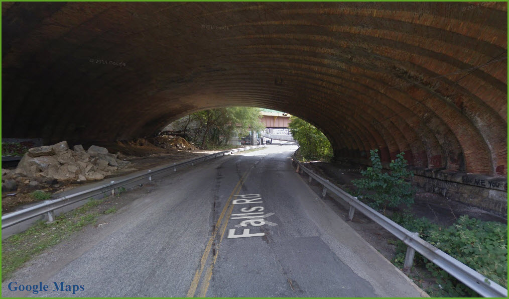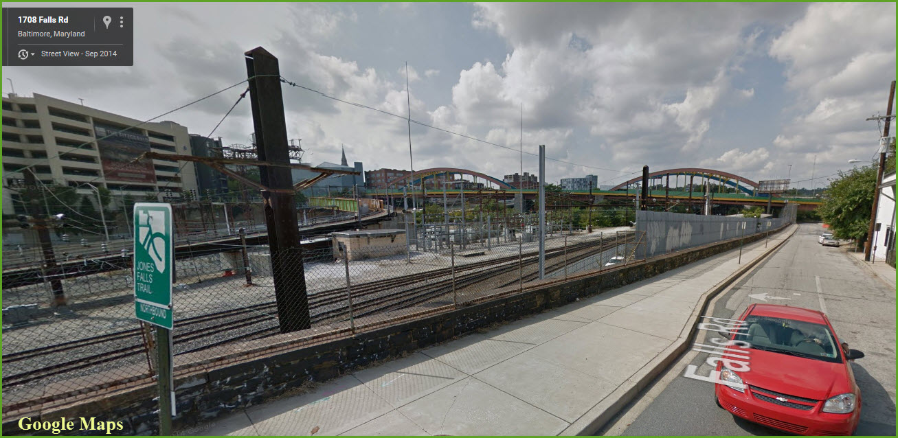 This is a tour going north on Falls Road, starting on the east side of Maryland Ave, where you can see Penn Station from the backside.