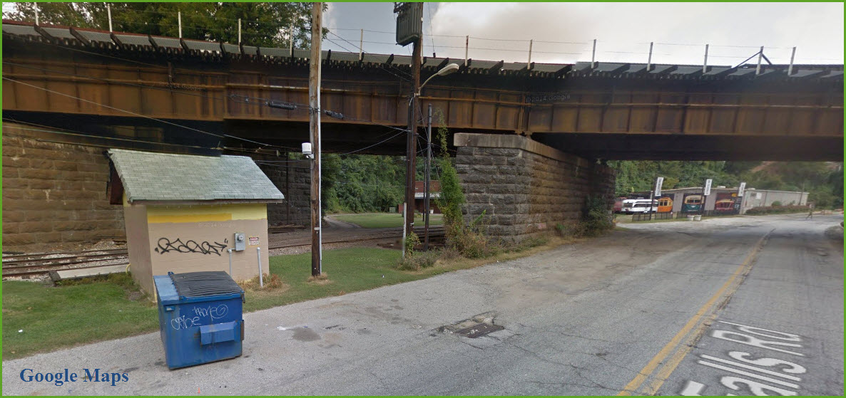 mainline through Baltimore. When trains are overhead, streetcars do not run under the bridge.