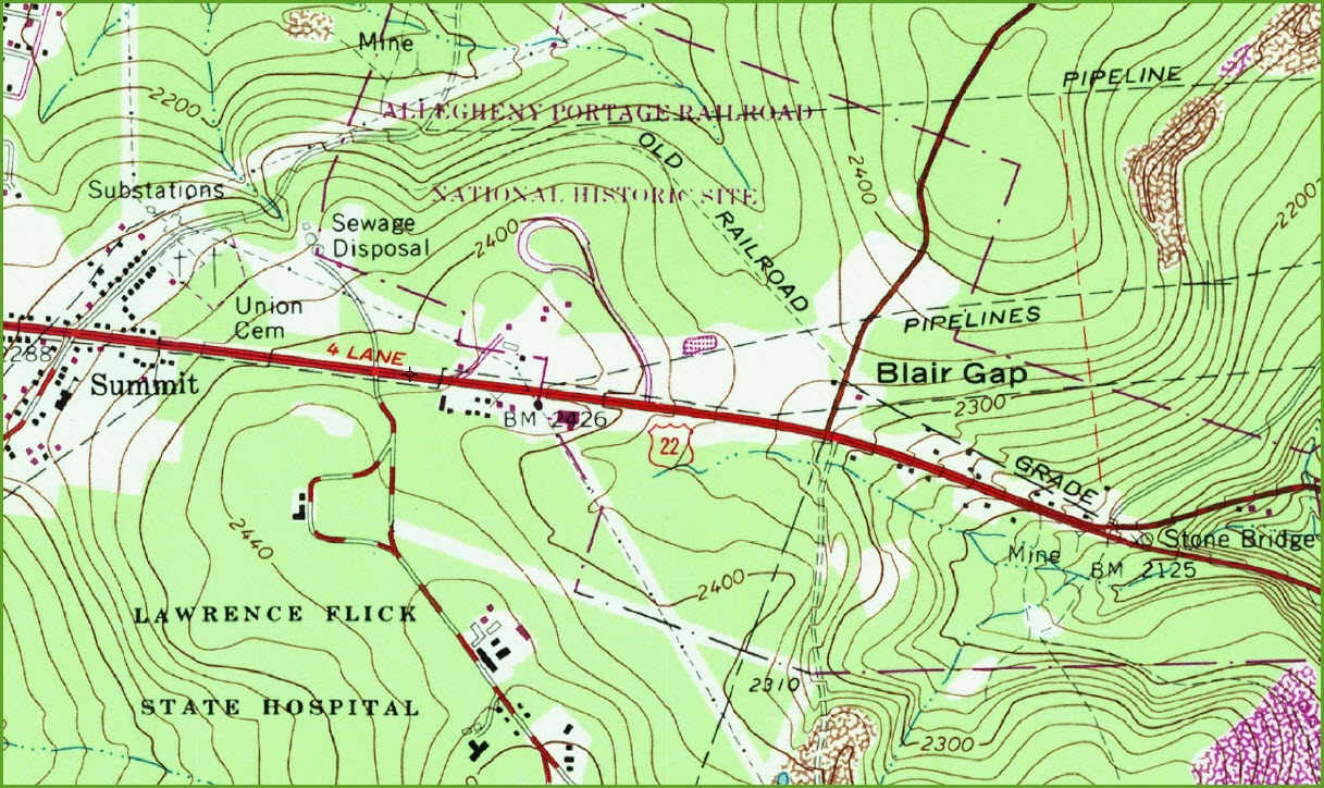 This map comes from a map I pieced together for Cresson PA, and is from the Ebinsburg Quadrangle - date unknown, but it is from the Conrail era.