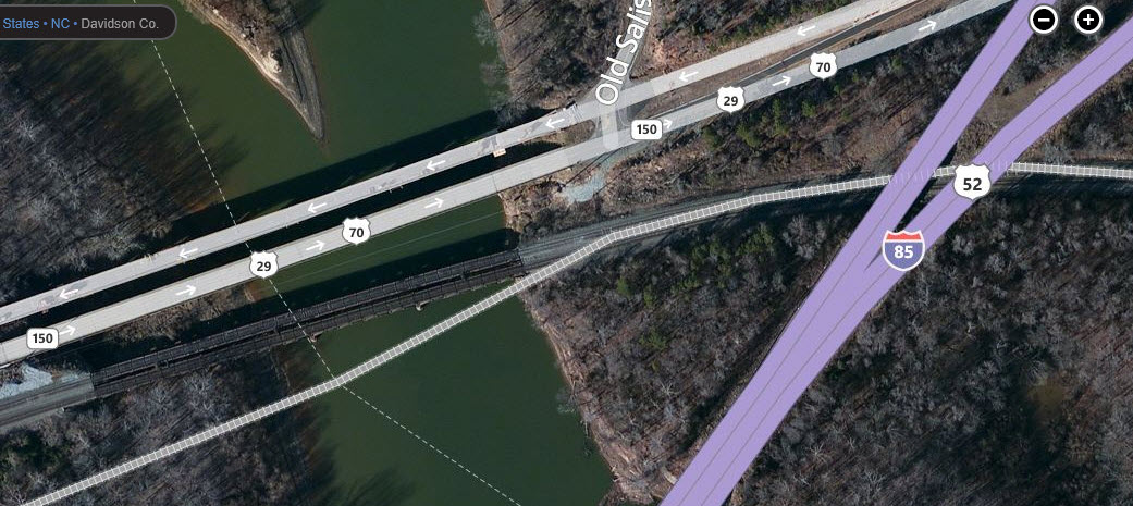 On the east side of Spencer, if you're travelling WB (or SB as the case may be) on I-85, and get off at exit 82, you'll see a bridge off to the left that the Norfolk Southern crosses High Rock Lake on. If you're lucky, you might be able to catch an EB train as you go over the tracks on the interstate.