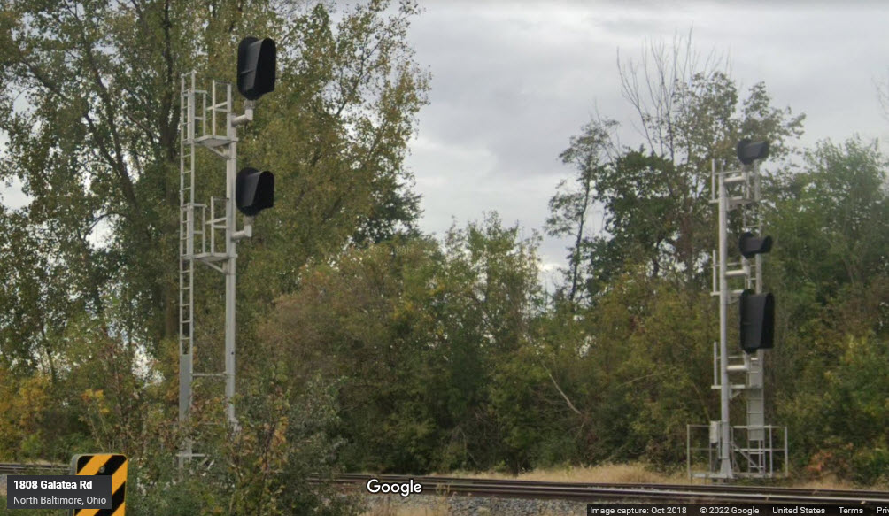 Looking east towards North Baltimore, a WB freight waits for a favorable indication.