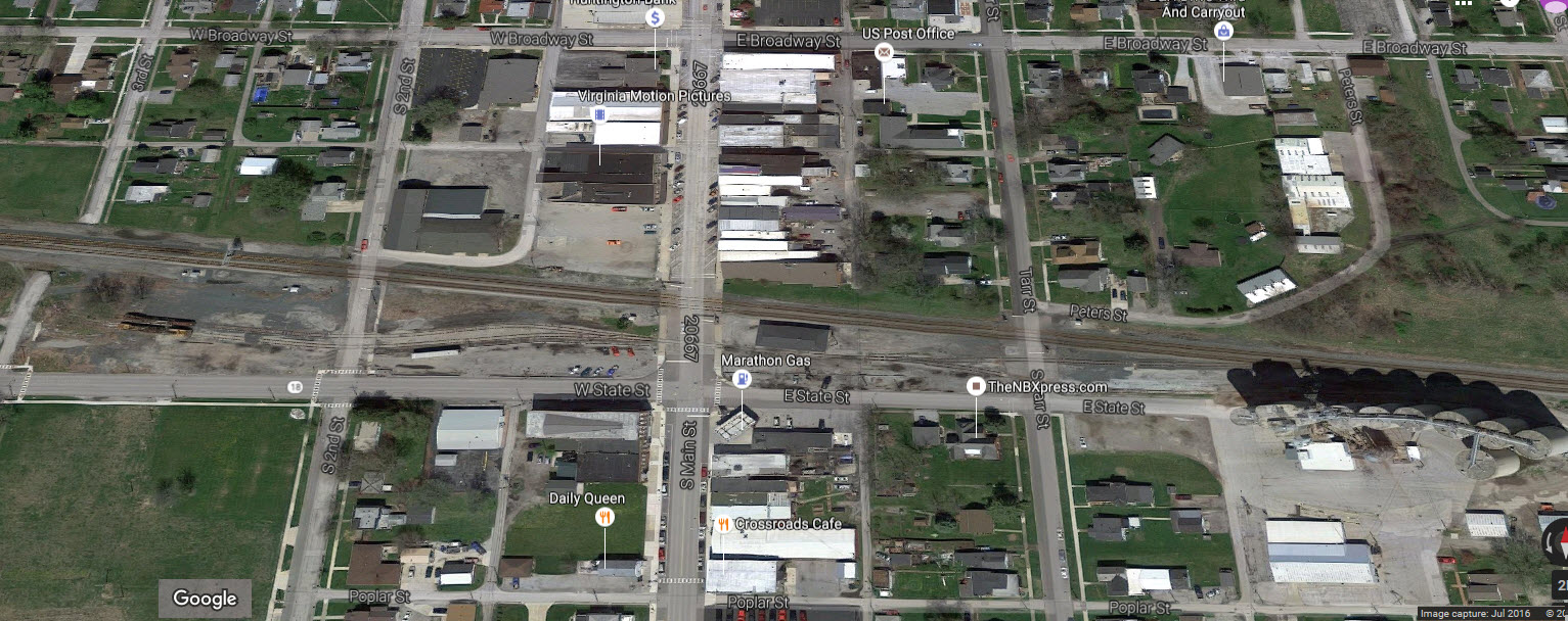 Beyond the interstate, you can almost see the interlocking signals for the diamond with the N-S line. That diamond is fully signaled.