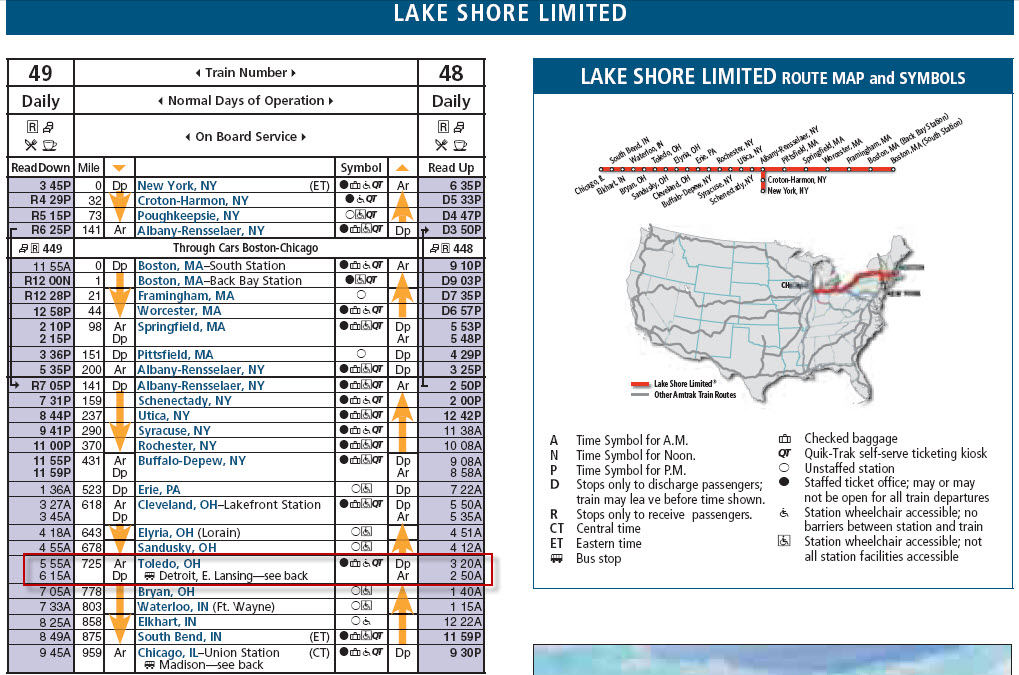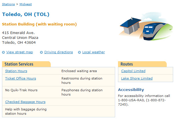 Walking around the platforms of the Toledo station, one can easily imagine the heyday of American railroading. If you look hard enough, you will still se a B&O sign hanging around. The lobby of the Amtrak station has a Toledo Scale on display, probably an original (and in the same place) from the old days when they weighed freight coming through. The rest of the lobby is decorated in art deco style, and the floor is even well done!