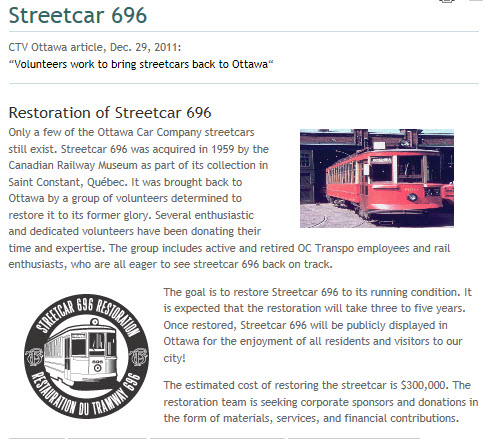 They are in the process of restoring a streetcar, #696, so it can run once again, more info here