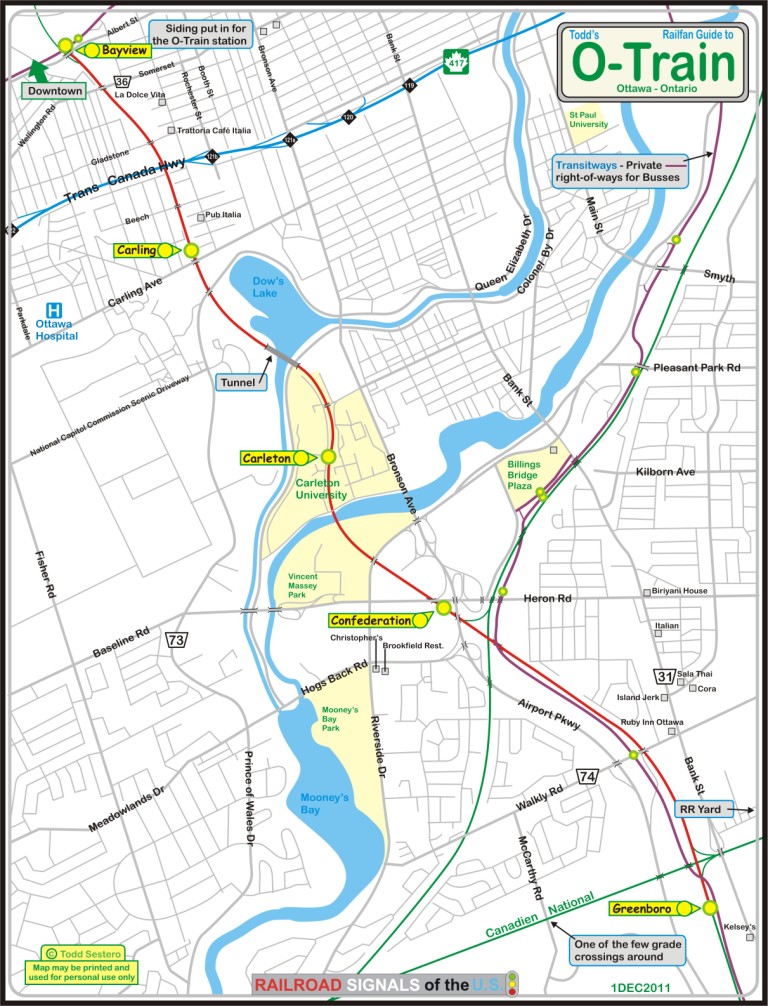 The official O-Train website is here , fare and maps are here