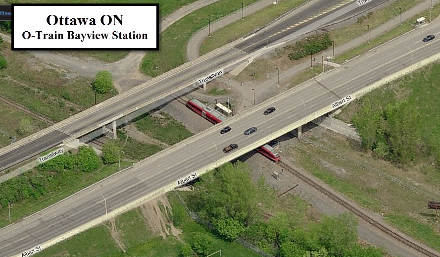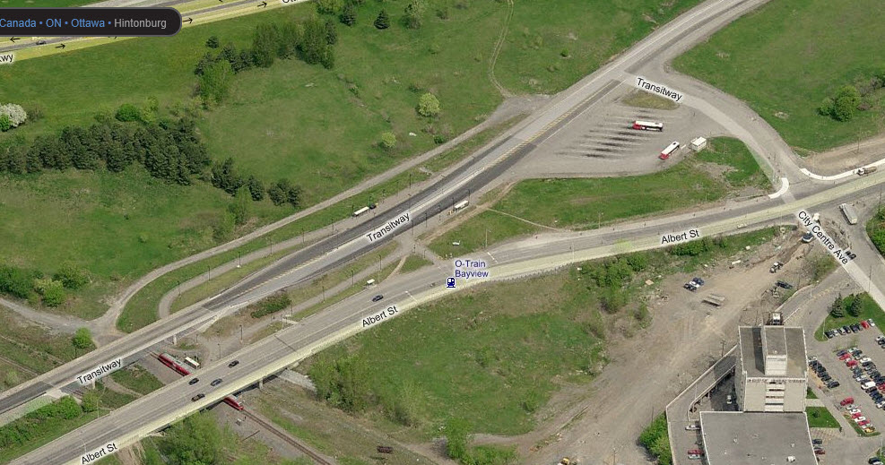 The north station, Bayview, is located adjacent to a Bus Transitway, as is the southern most station, Greenboro.