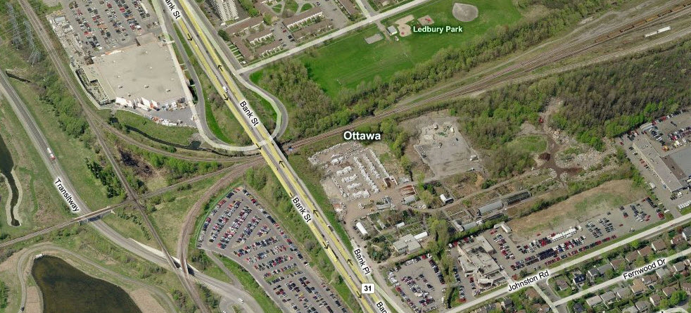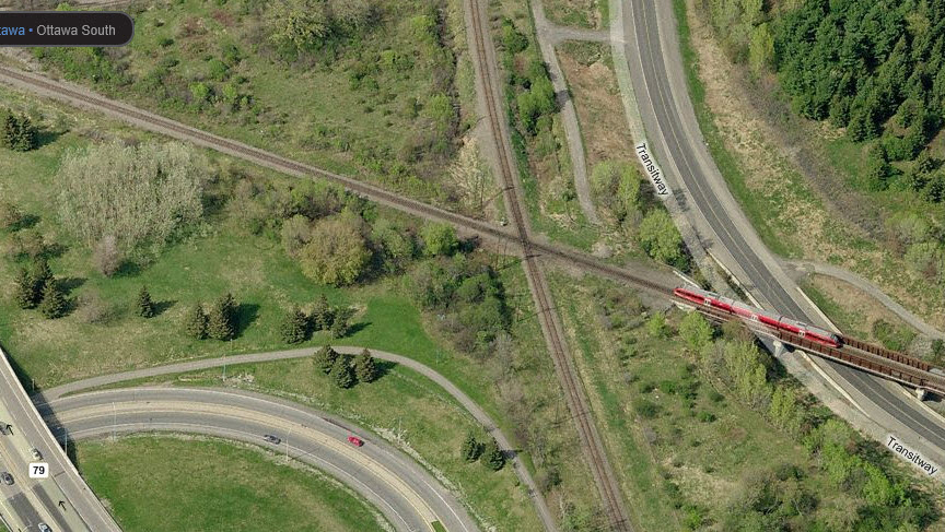 This is the second of the two diamonds, and is immediately north of the Greenboro Station. The main CN yard, Walkley Yard, is just off to the right.
