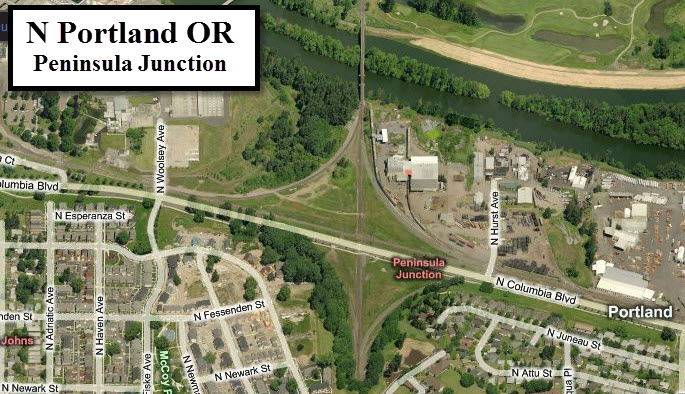 This junction sports a full four way wye and a single track diamond. It is fairly well signaled, and it is almost all easily shot from N. Columbia Blvd, which runs right through the middle of the junction... how lucky we are!