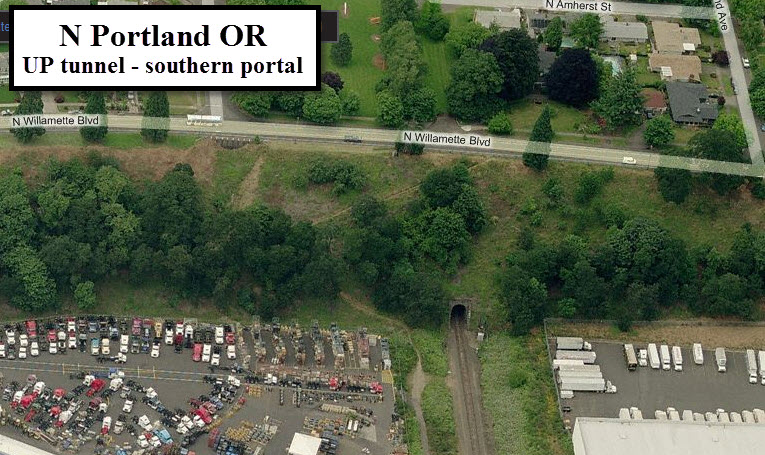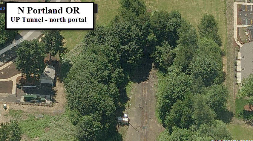 Upon leaving the north side of Albina Yard (above), the single track enters the tunnel before getting to N. Willamette Ave. It looks like the east side of the tracks is a good place for pictures from a parking lot there off N Cutter Circle.