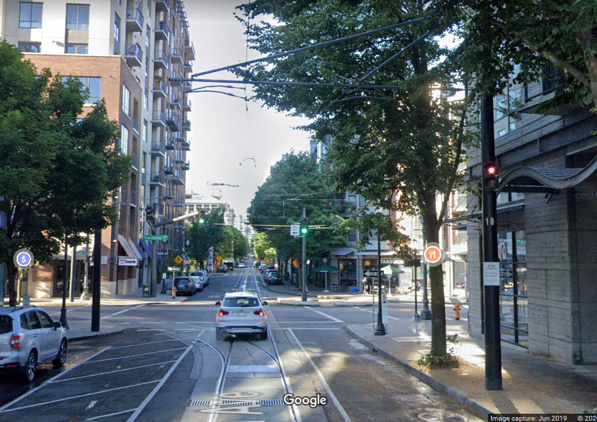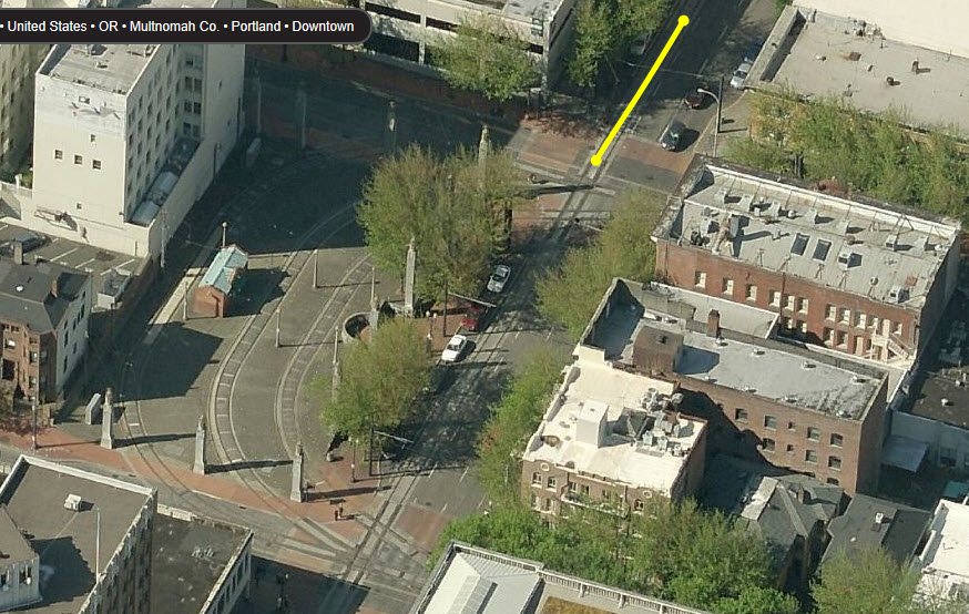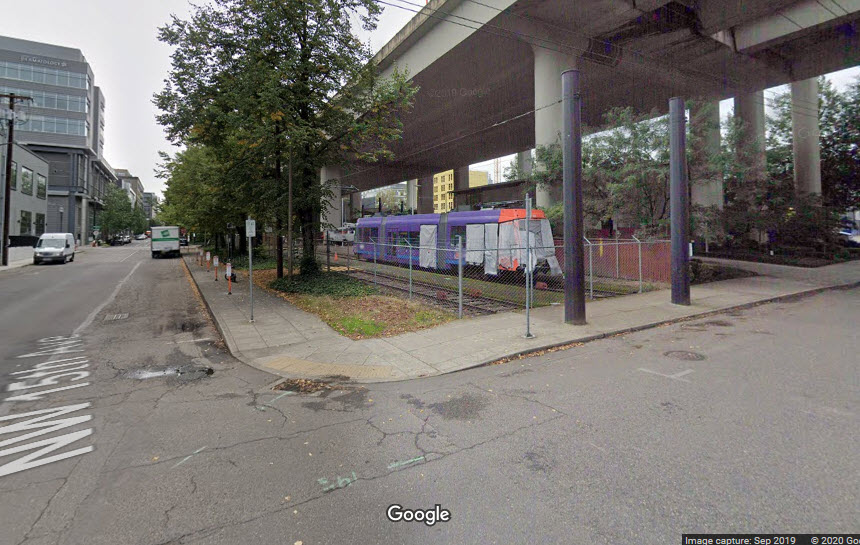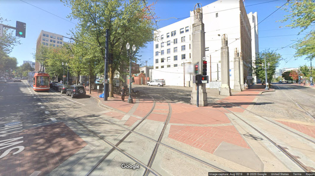 on SW 11th Ave, it crosses the Max Light Rail Line at SW Morrison St and SW Yamhill St.