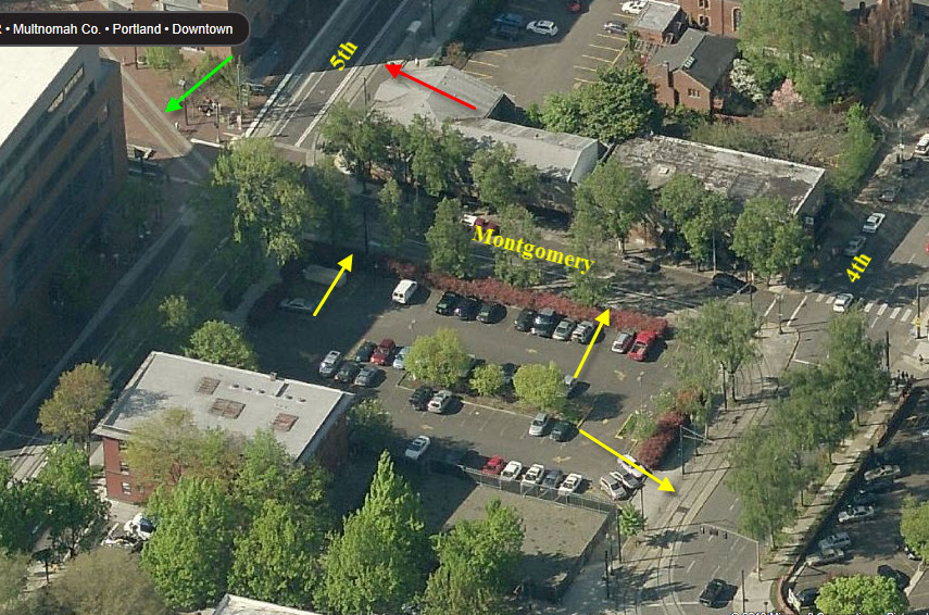 The Red arrow is pointing to the inbound track running NB in 5th St.