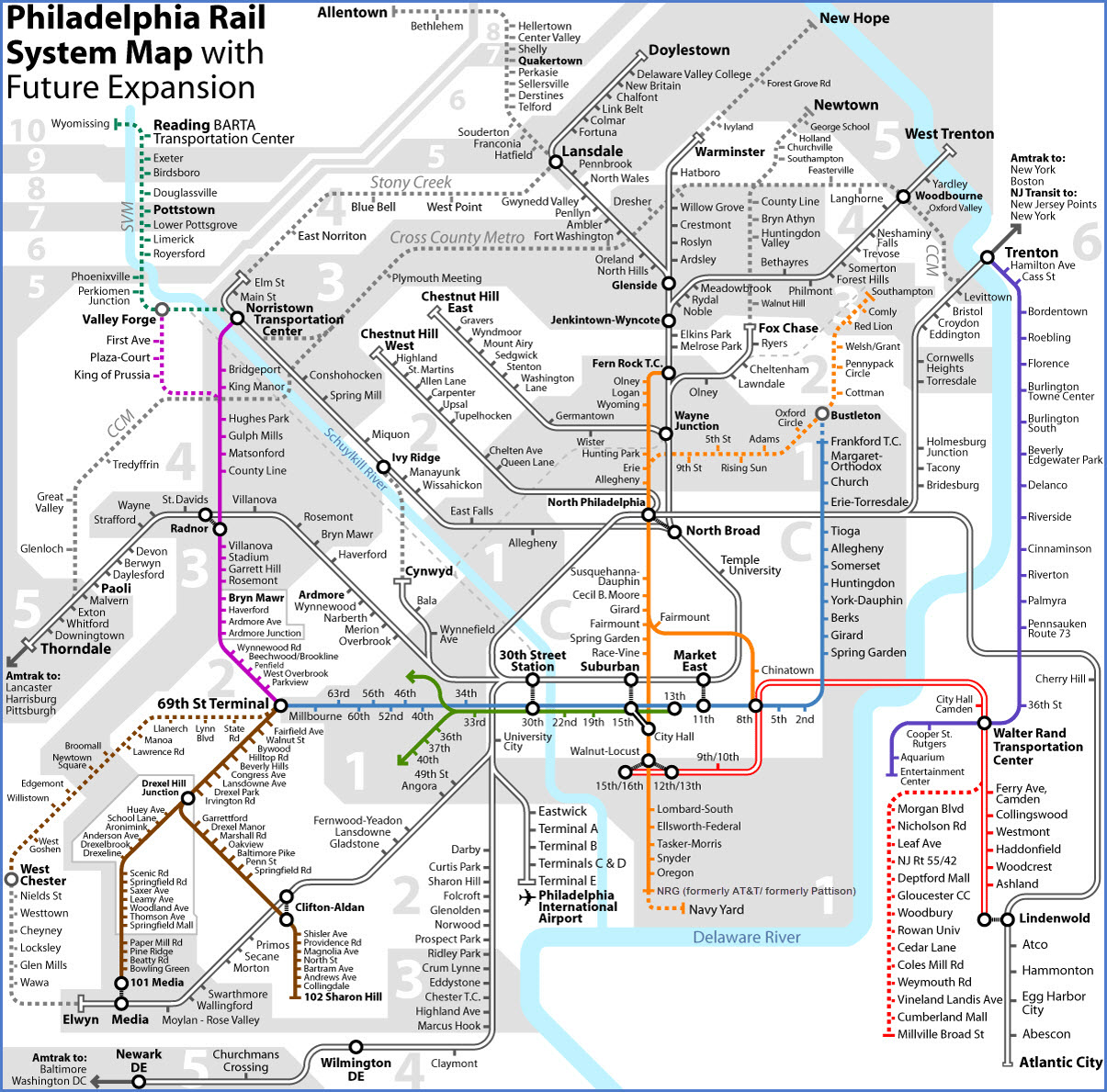 Below is a map of just the heavy rail service of Philadelphia that I modified from