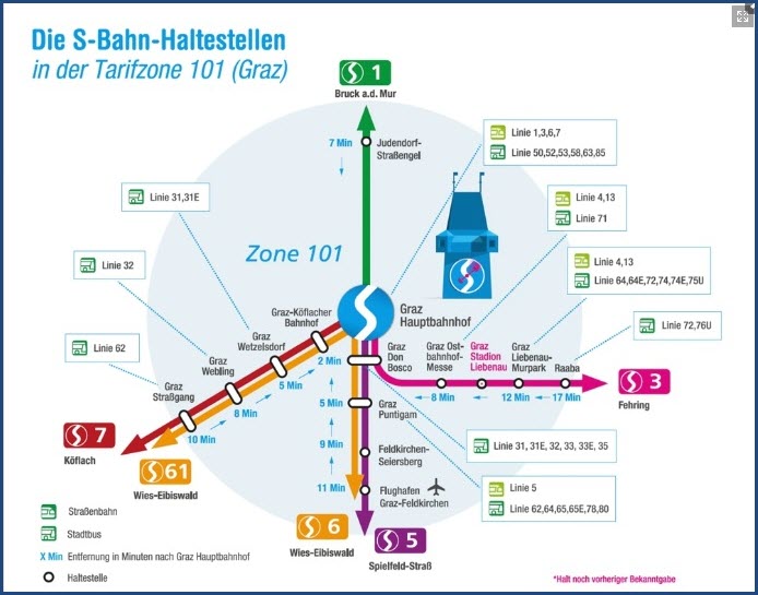 high-speed Railjet and regional S-Bahn Styria services, and is accessible by tram and bus. ÖBB also operates various other regional and high-speed trains, including the