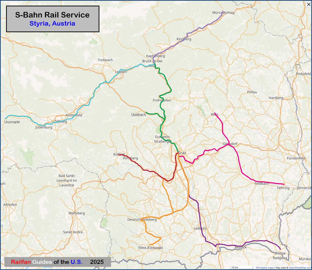 -- The StB (basically the railroad of the state of styria) does the branch lines and the occasional runs to Graz.