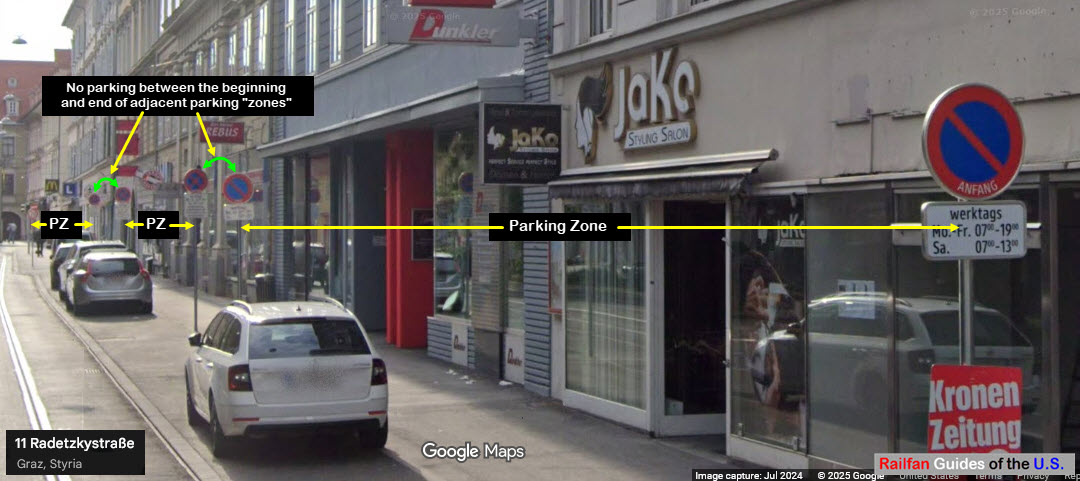 These two (of three) zones are along Radetzkystraße, about a block from the Jakominiplatz.