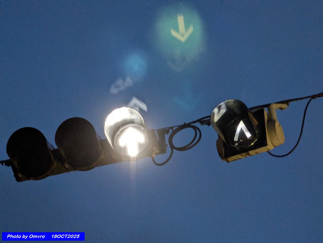Above, the signal is indicating the tram will be going straight instead of taking the diverging route.
