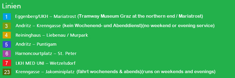 The city of Graz has a comprehensive Tram system with seven lines. The