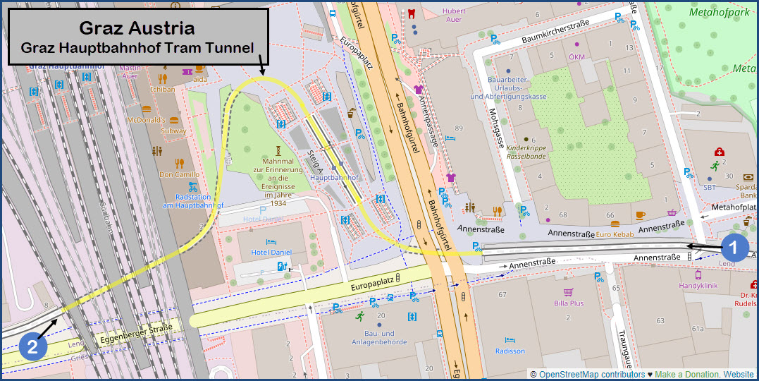 you can already see "Graz Köflacherbahnhof" directly next to the Hauptbahnhof. That was once the property