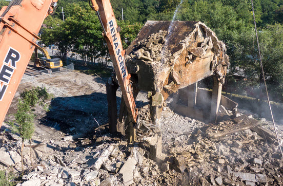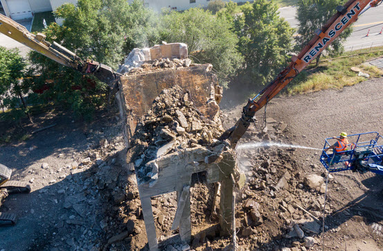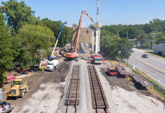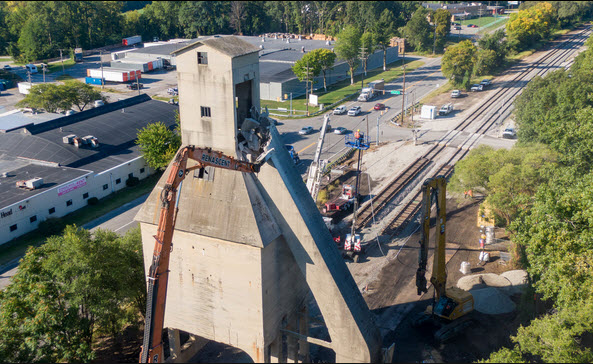 notice that they took out two sections of track in advance of bringing the tower down. WSBT Video