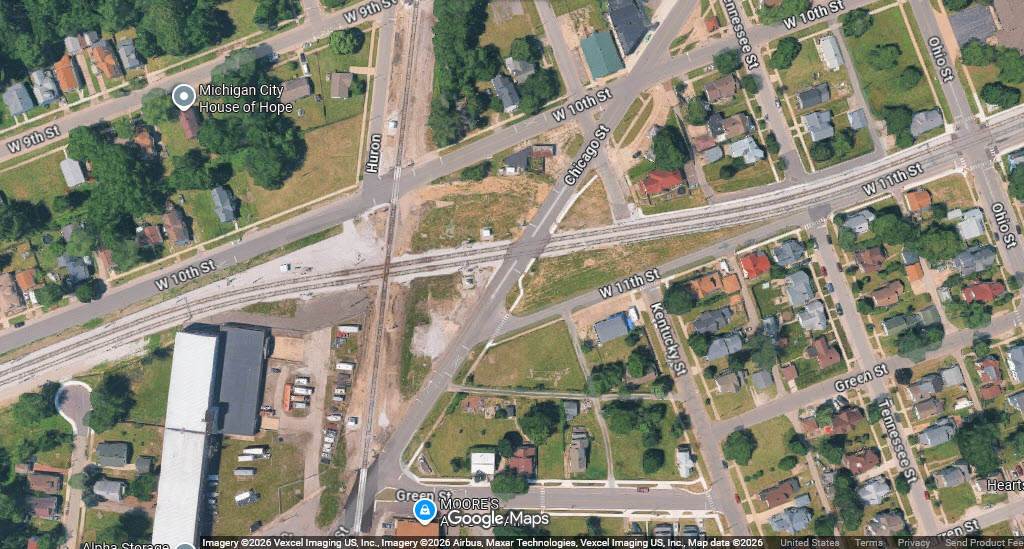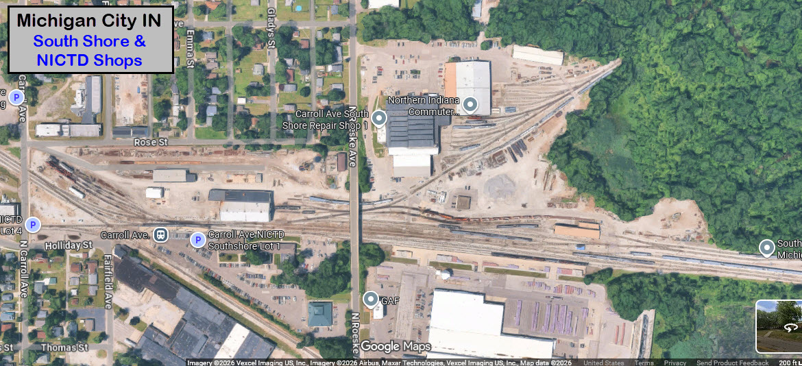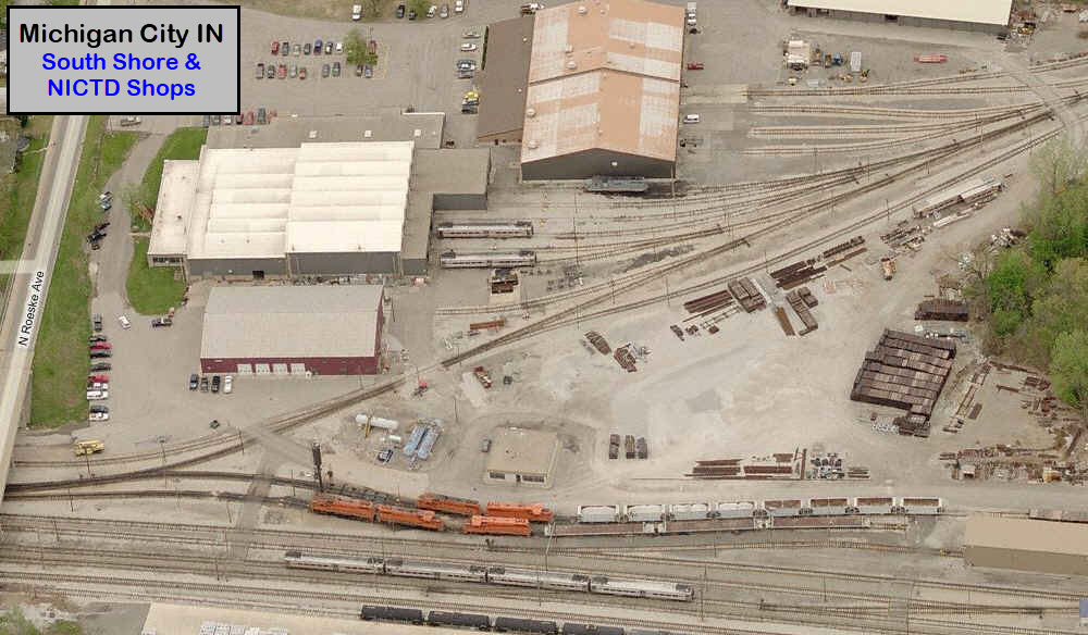 These aerial shots show you the South Shore and NICTD shops on the east side of town.