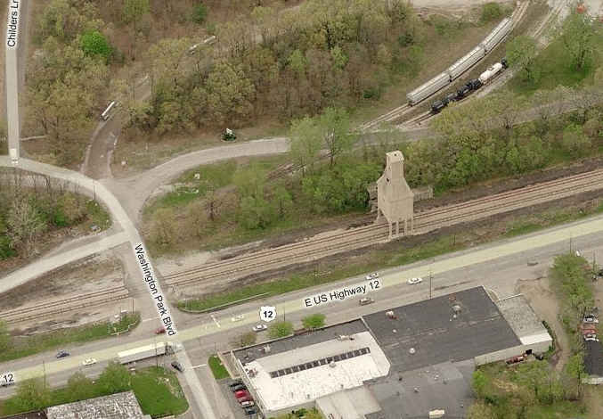 At the south end of the power plant yard where US12 crosses the tracks.