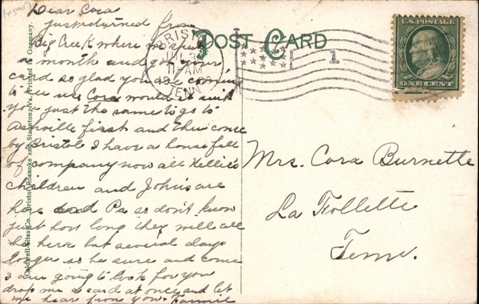 which in no way resembles what was around 100 years ago. So this is a guess...... It could be in Tennessee, or it could be in Kentucky.