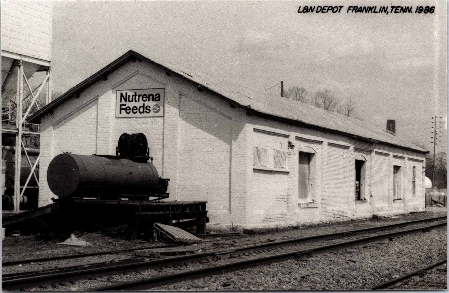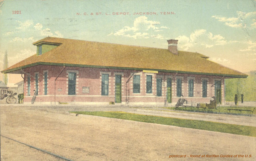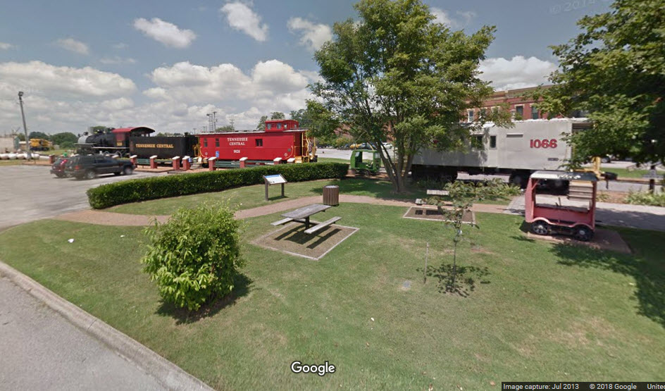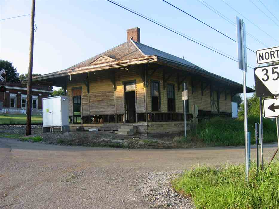 This brick depot was originally built by NC&StL. The depot was built in 1896 and service ran until 1951. Today, the depot houses a tax business. The tracks run