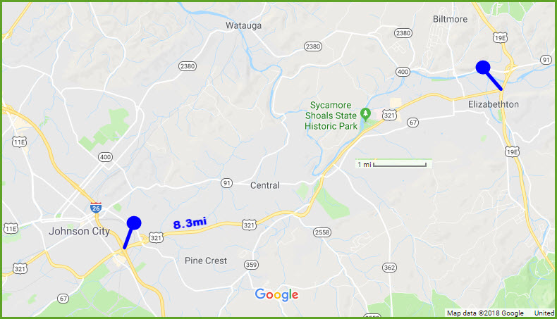 Johnson City was served by two railroads, the Clinchfield RR, and the Southern Rwy. They are now CSX and the Norfolk Southern. Just north of Johnson City is