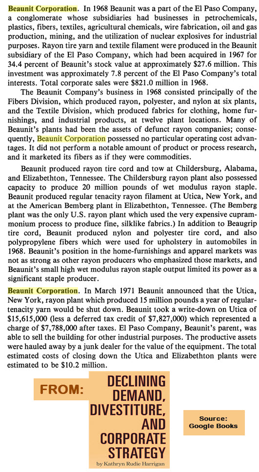 The plant produced RAYON, and had a difficult time come the 70's-90's.
