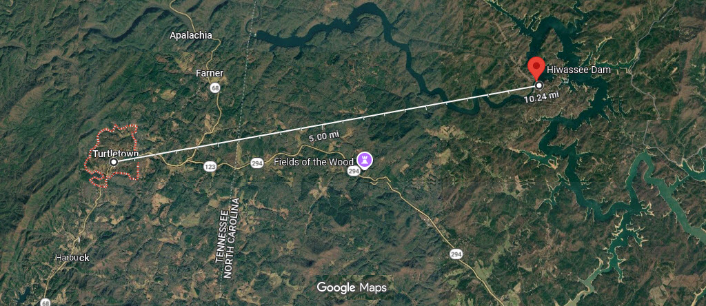 Hiwassee Dam in North Carolina (10 miles away, as the crow flies).