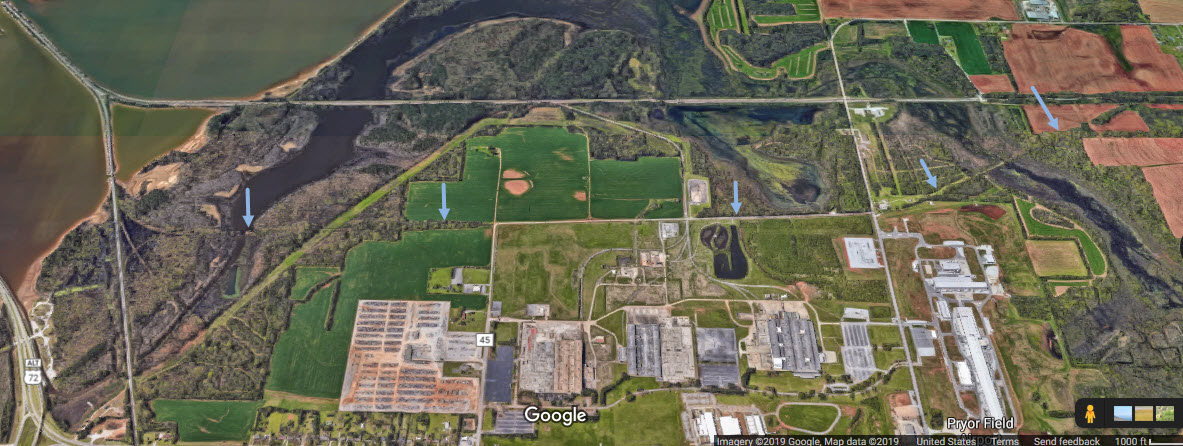 Aerial shots were taken from either Google or Bing Maps as noted. Screen captures are made