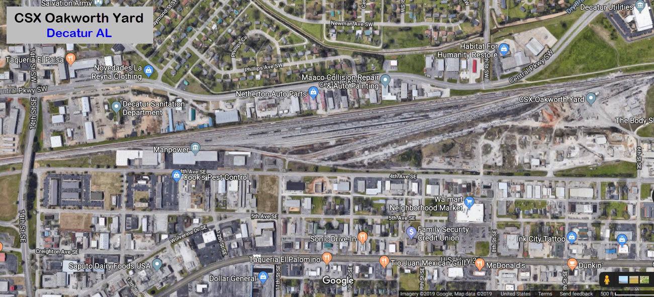 There are three yards located in the Decatur area. One is right at the CSX/NS