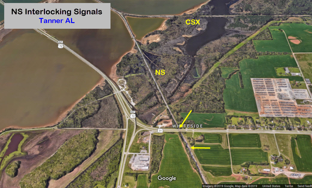 Norfolk Southern heads west to Memphis TN passing through Muscle Shoals AL and Corinth MS.